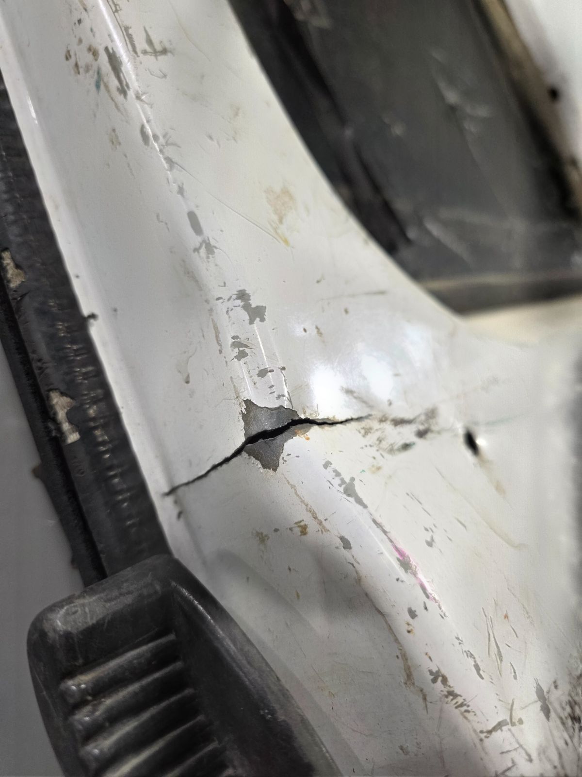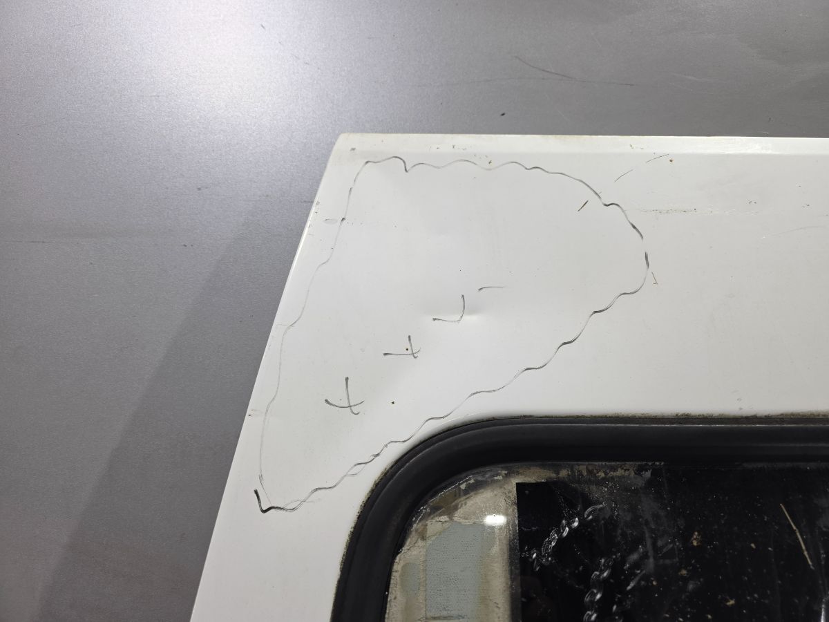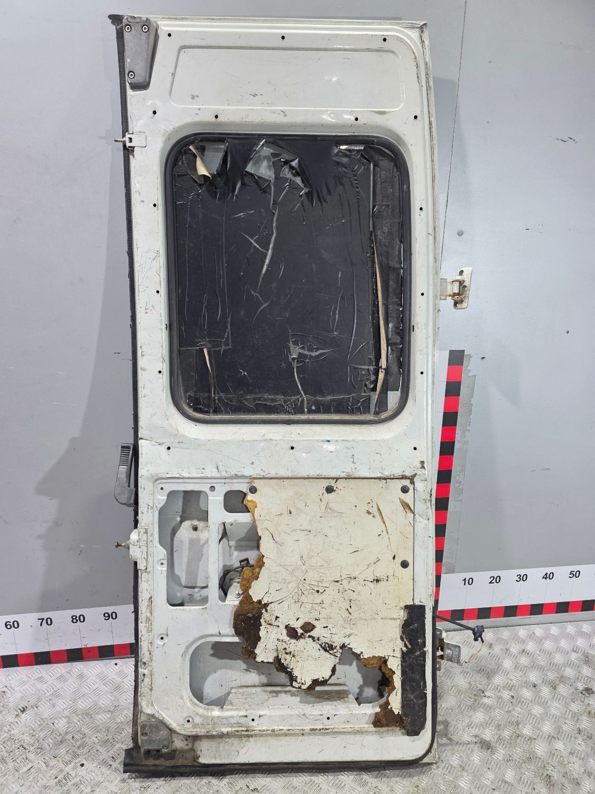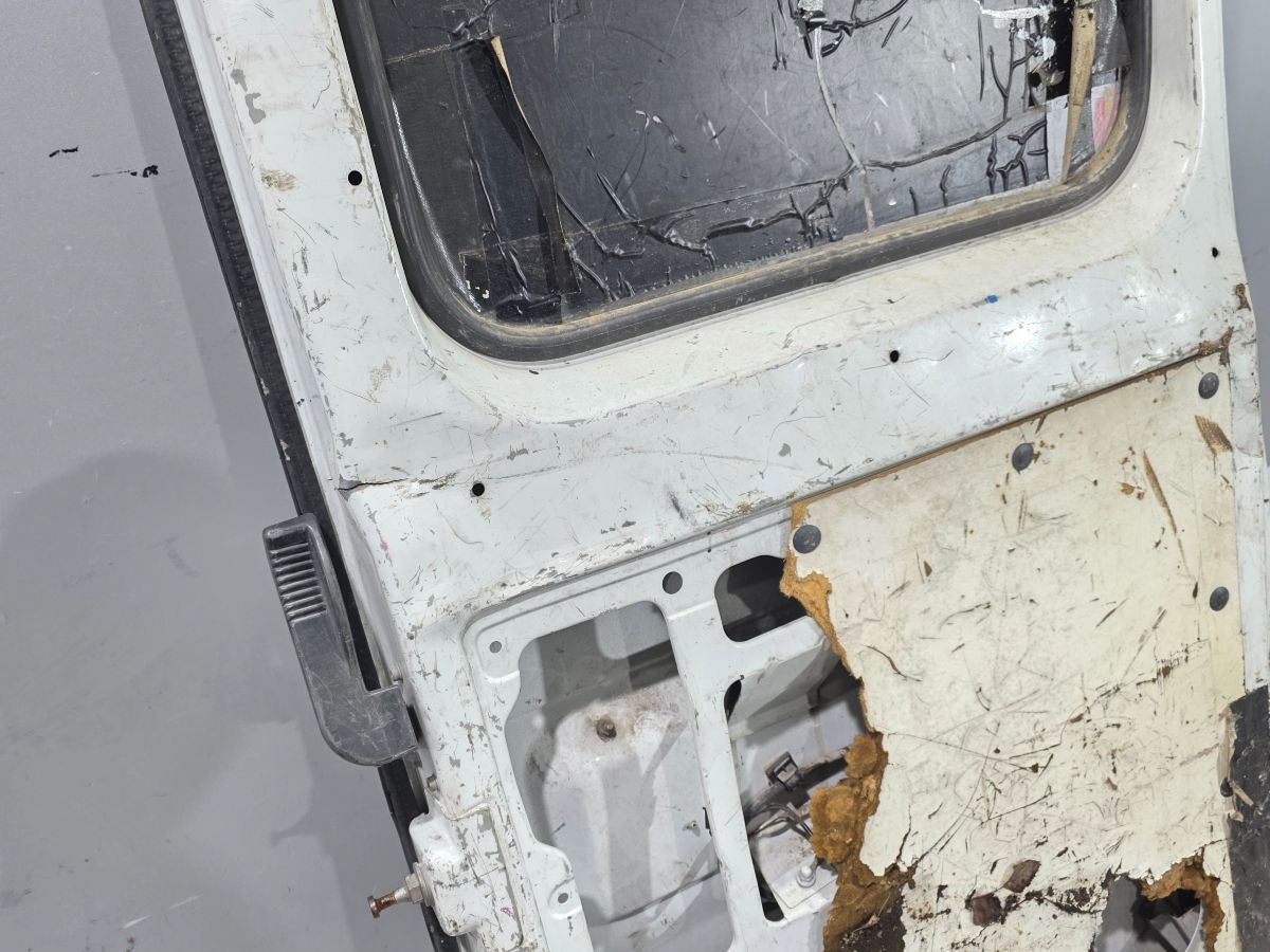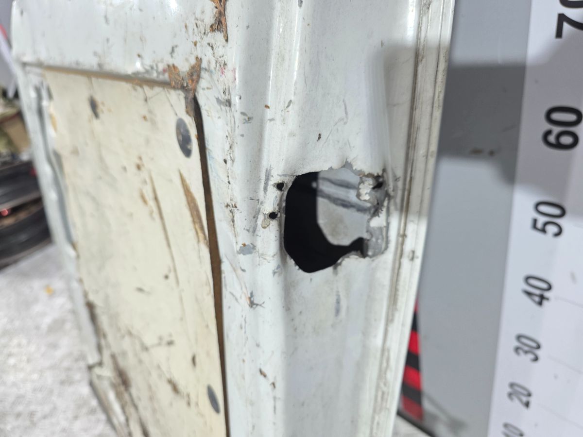 Из Бельгии. Гарантия на установку и проверку. Царапины , потёртости, вмятины, вырвала часть где крепиться ограничитель, внутри трещина, отверстие от сверла, Низ немного согнут, Высота 192 см