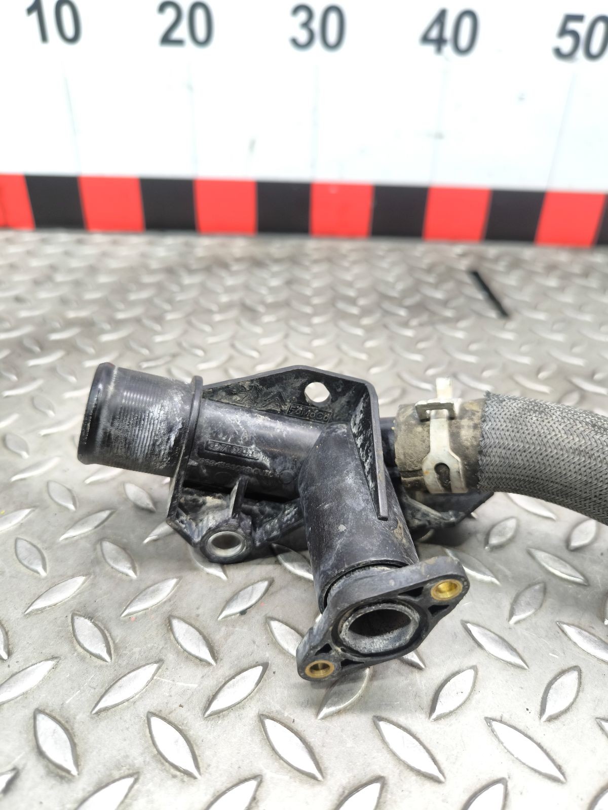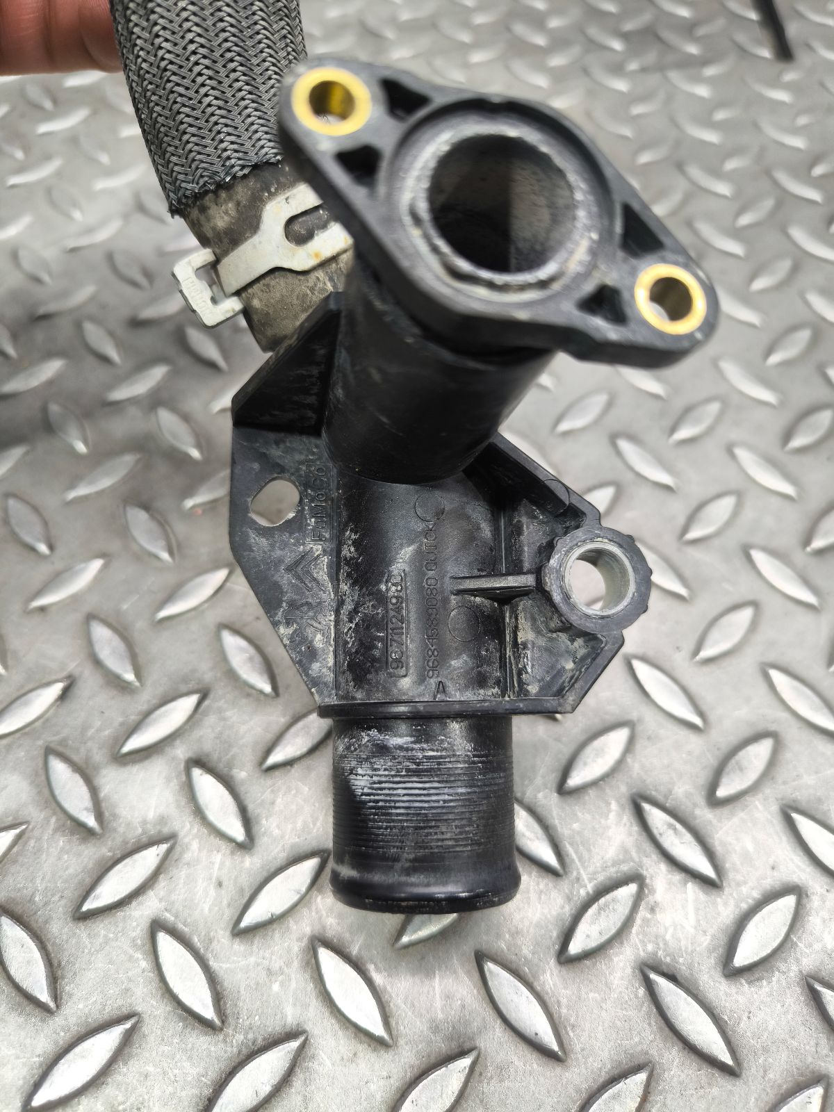 Фланец (тройник) системы охлаждения к Peugeot Partner, 2016г.